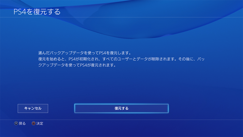無事にPS4のシステムソフトウェアが新HDDに再インストールされ、懐かしい画面と再会できたであろうか。ここでベンチマークを取ってニヤニヤするでもよし、SNSでHDD換装したことを叫んでもいいし好きにするがいい。一息ついたらPS4のデータを復元しよう。
